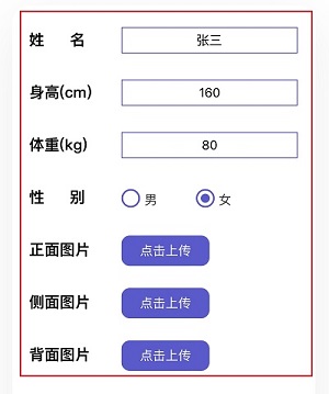 d. 拍照完成后,出现预览图,对照参考图片(视角及只要身体部位是否完整)决定是否重拍,填写基础信息,后点击提交。